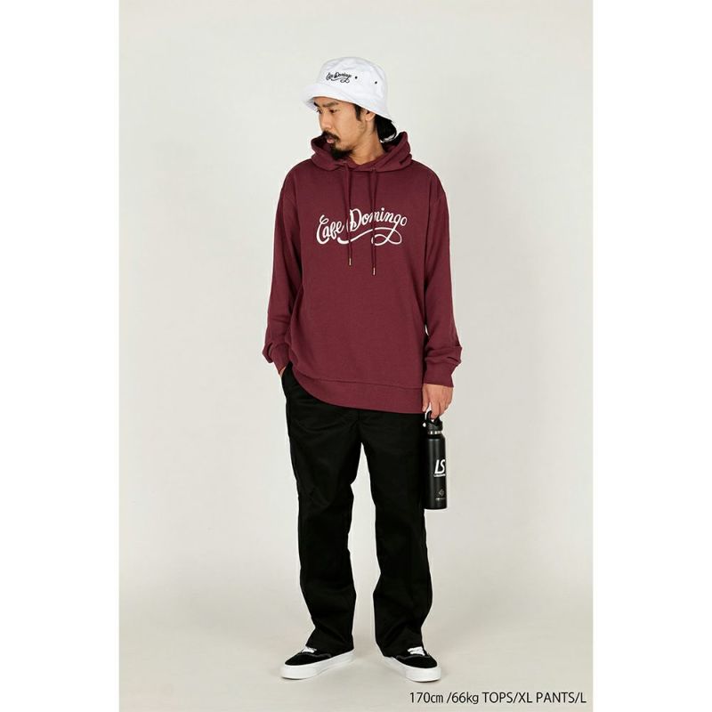 内側のポケットなどスレキ部分にはcaf domingoの総柄を入れ、ウエスト部分は紐とベルトループの好きな方を選べるパターンに仕上げました。