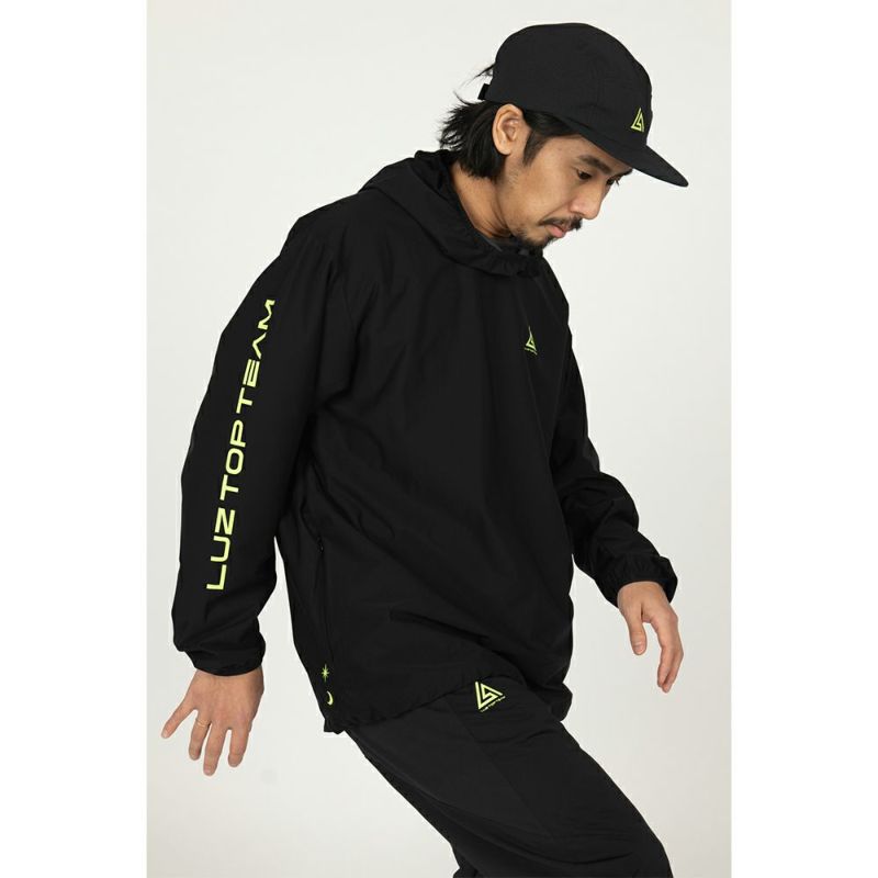 それでいてストレッチ性も高く、かなり軽いという機能的な生地を最大限に活かすため、フロントZIPなしのアノラック仕様にしました。