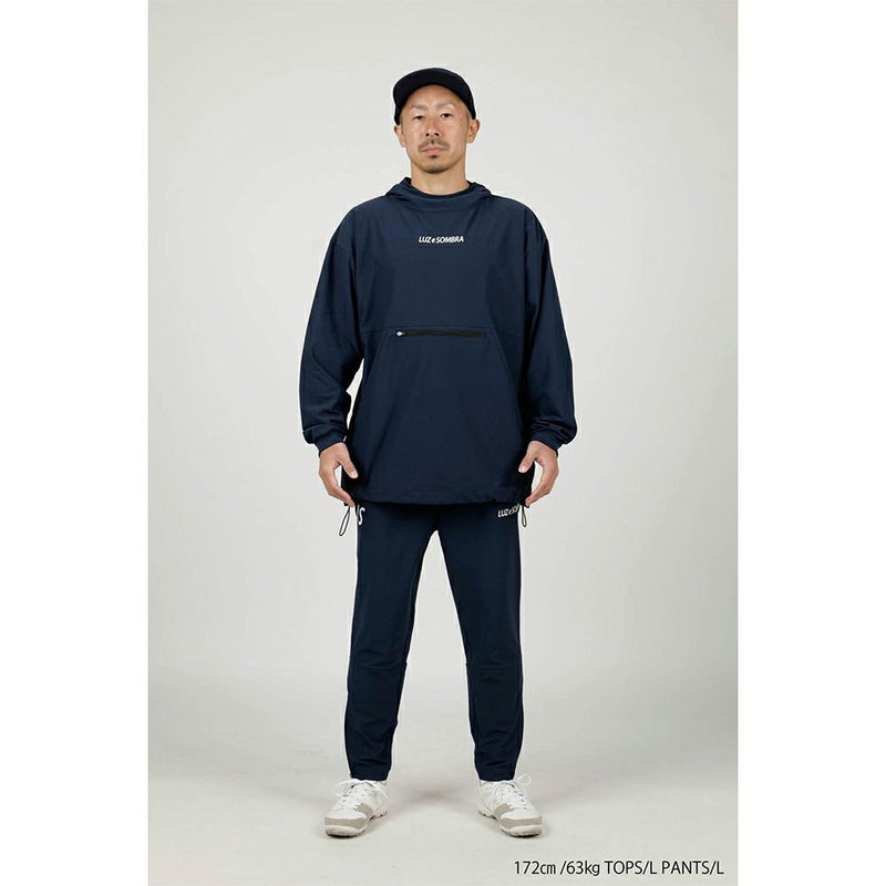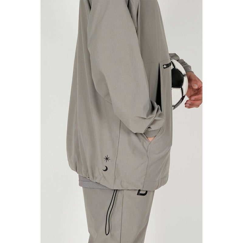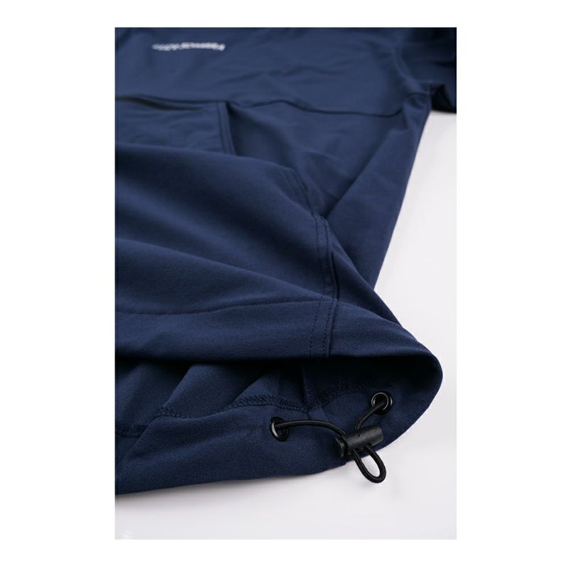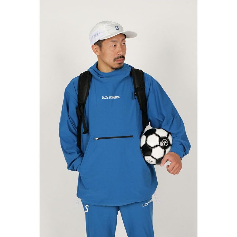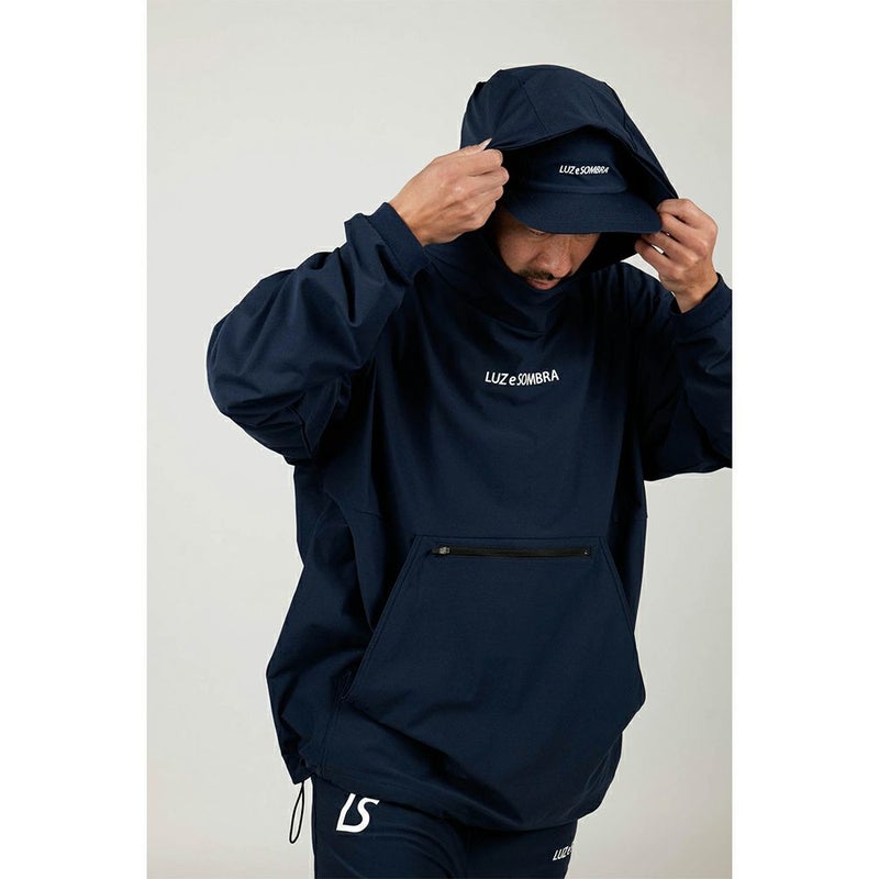 大きめのカンガルーポケットもドライ感がある生地もポンチョの下に着るのにとても相性が良く、もちろんアウターとして着ても決まるアイテムです。