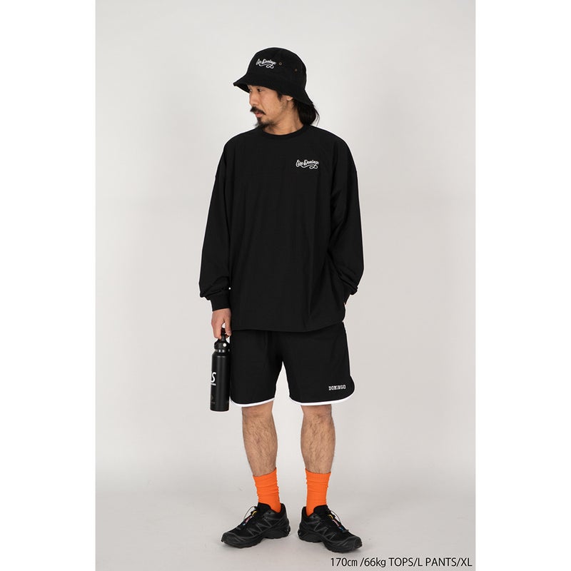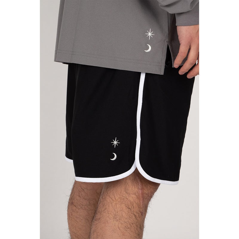 MEMO: サイドから裾にかけてバインダーのラインテープが特徴的なNJショーツ。 少しレトロ感のあるショーツで、ONでもOFFでも使えるNJの夏の定番ショーツです。