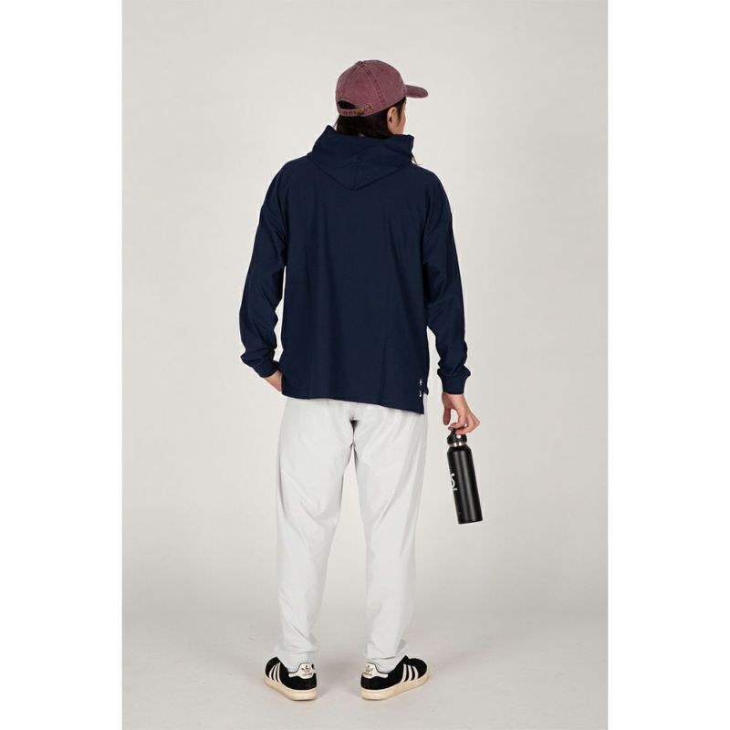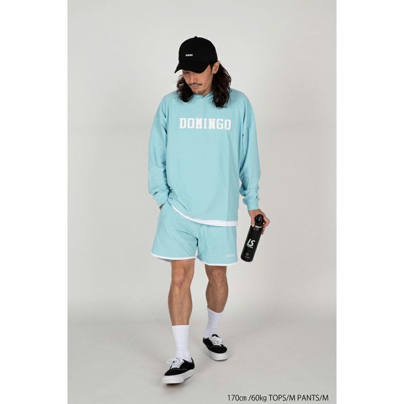 DOMINGOで人気の素材NJを使用し、フードもあり長袖なので重ね着としても使えるアイテム。