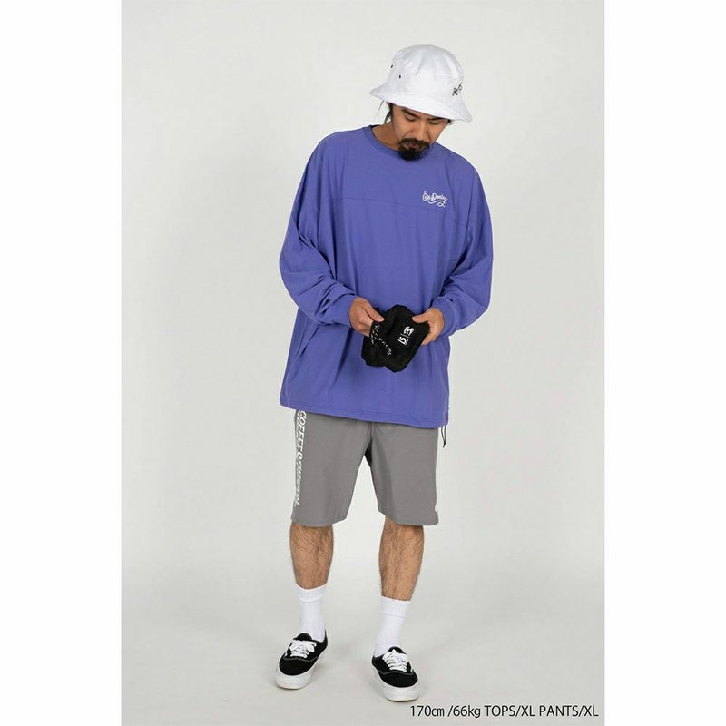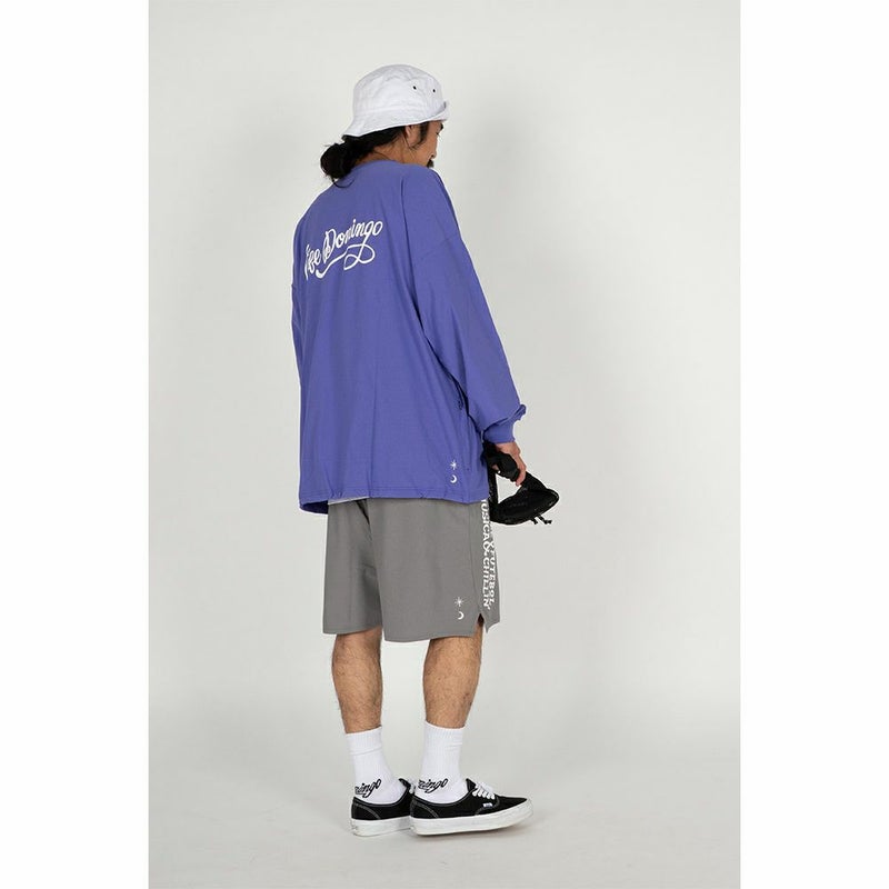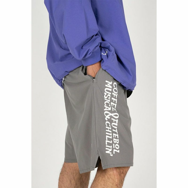 定番のNJ生地に裾脇にスリットを入れた特徴的なプロダクトデザインで、右には縦に大きめなグラフィックと、左には裾にcafé domingoのロゴを入れた視覚的にも新しいショーツを作成。