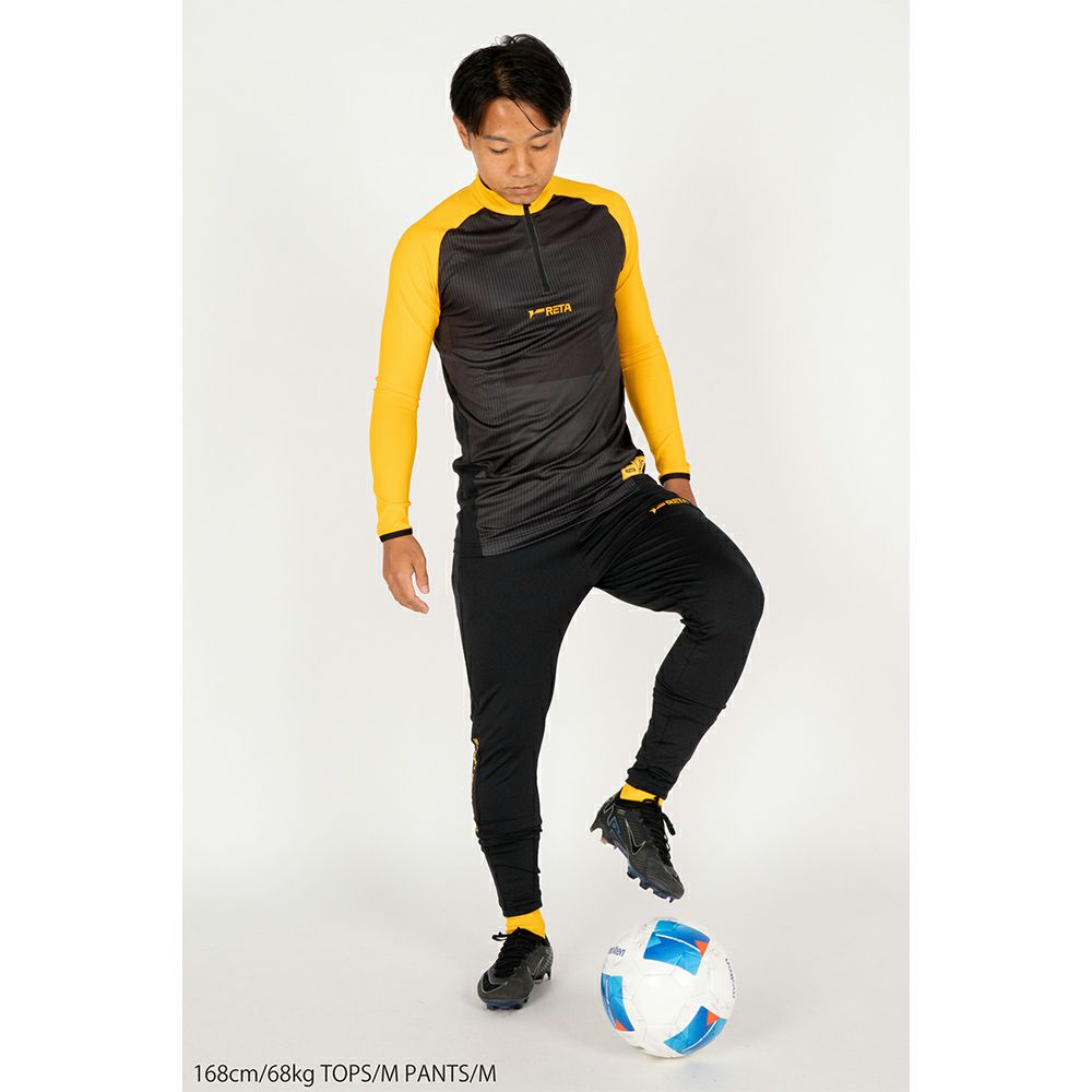 今、海外やJリーグでも主流のタイトなスタイルをRETAのアイテムで表現。