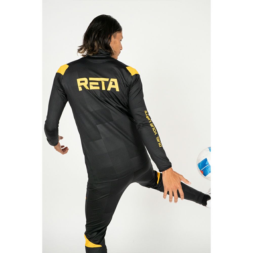従来よりもタイトでスタイリッシュなサイズ感になっており、海外やJリーグでも主流となっているタイトなスタイルをRETAならではのデザインで取り入れています。
